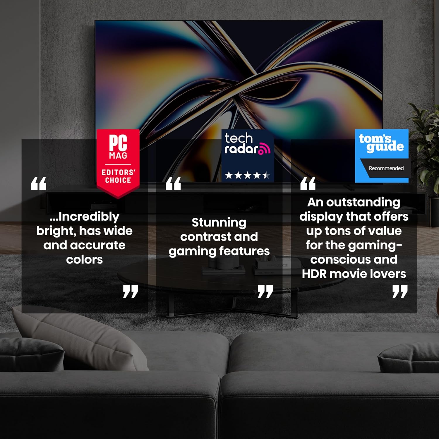 Review: This TV is fantastic! The picture is amazing, and the Google TV user interface is incredible. I’ve never had a UI that is as intuitive as this one. You can search for a program and it searches all of the streaming apps on your TV. Hisense makes wonderful TV’s at mid-level prices. The remote was a huge surprise. It has everything built in to easily get to all the features/settings and programming. As with all new TV’s sold today, you’ll need a soundbar for high-quality. I expected that when I made the purchase. I highly recommend this unit.