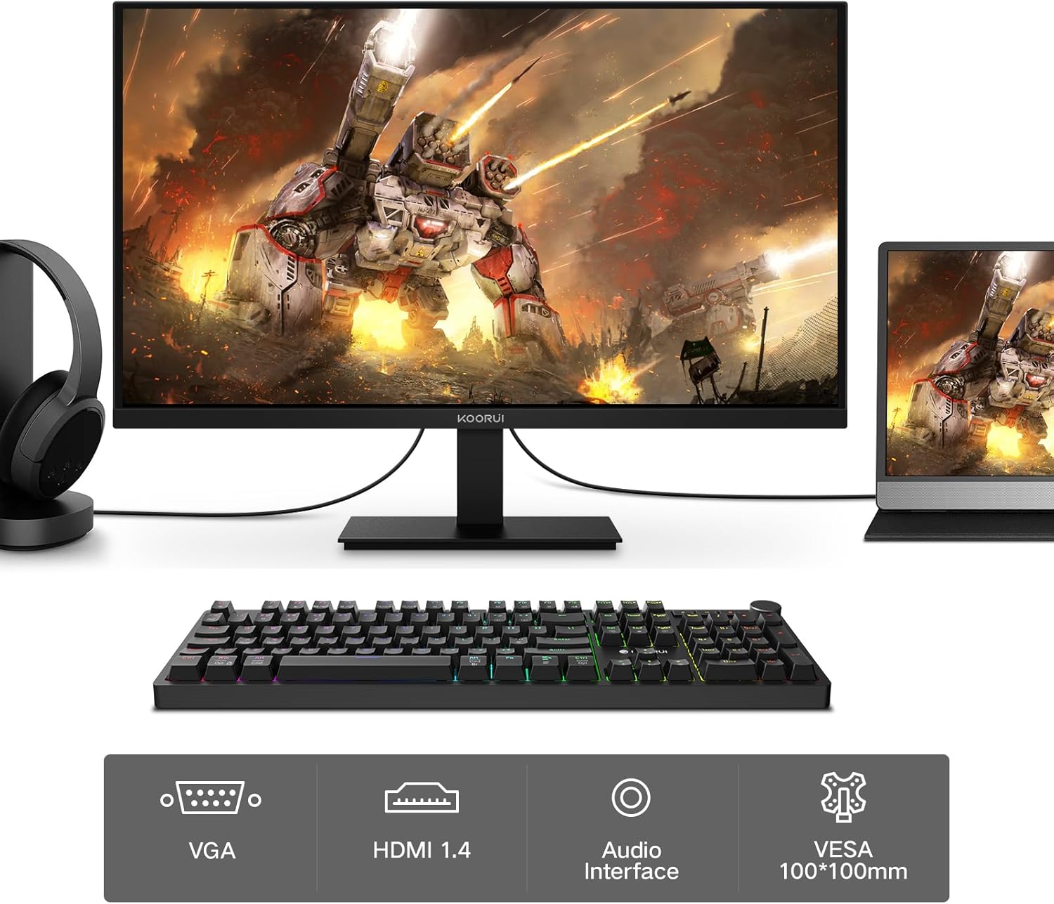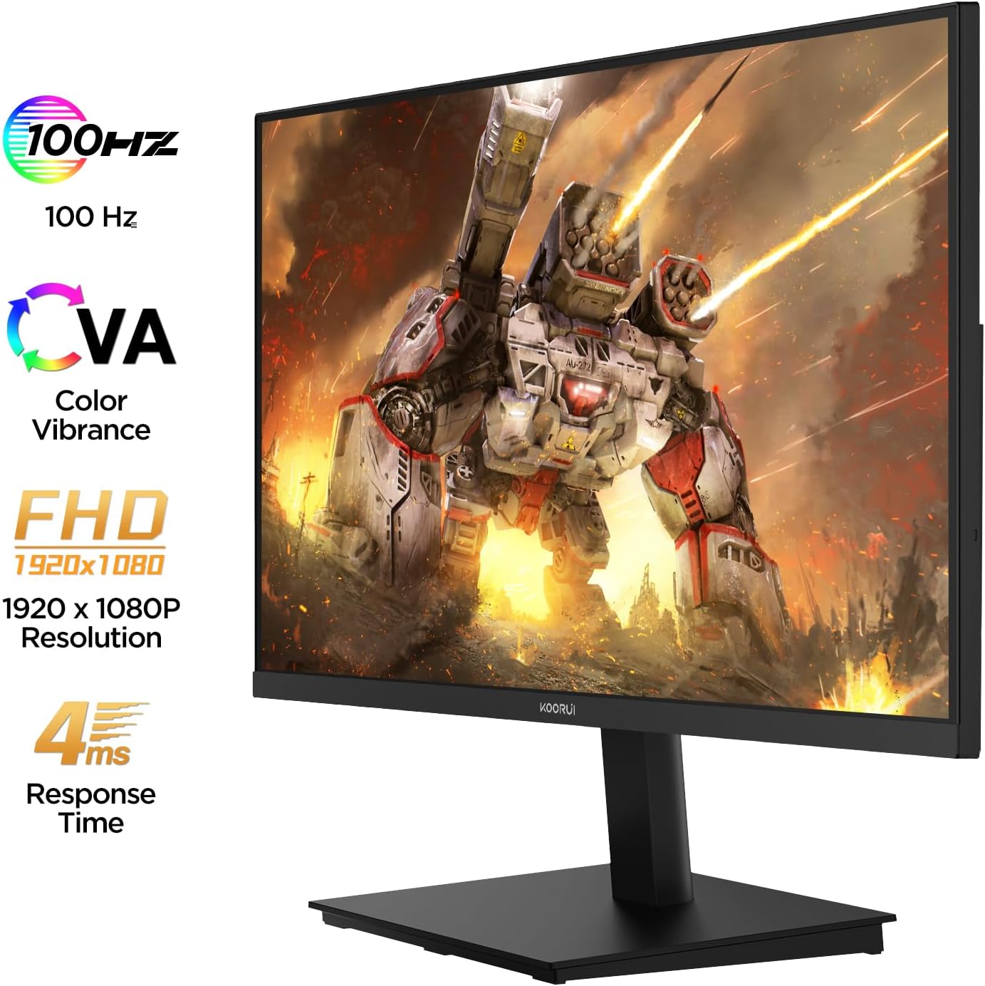 KOORUI Computer Monitor 22 Inch PC Gaming Full HD 1080P 100Hz VA Panel LCD Display with Adpitive sync (HDMI/VGA/VESA 100x100mm/Audio Out)
