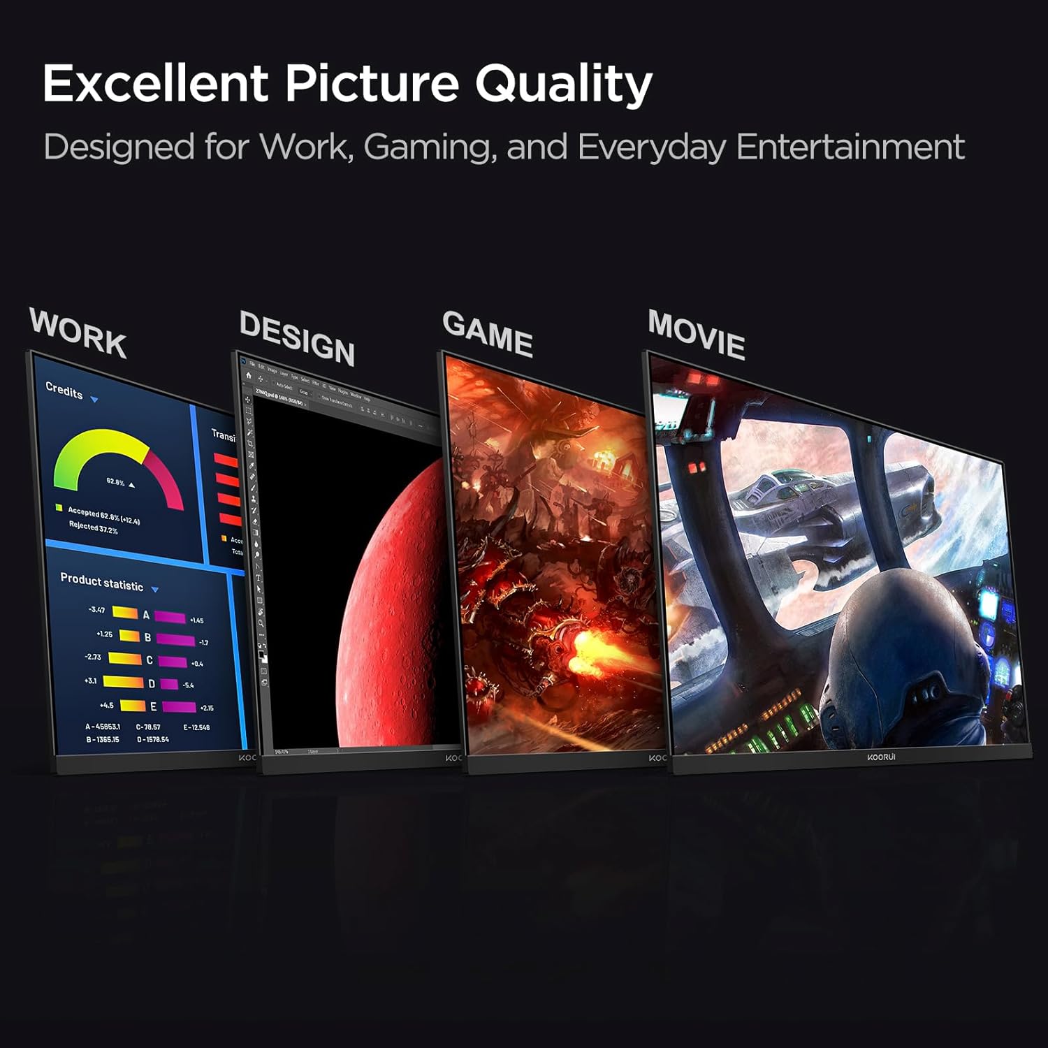 (Overwhelming Contrast Ratio) The KOORUI 21.5-inch gaming monitor uses a “VA panel” that has excellent light blocking properties and a clear black color, and has a much higher contrast ratio compared to TN and IPS panels. It is a panel that can be taken out.