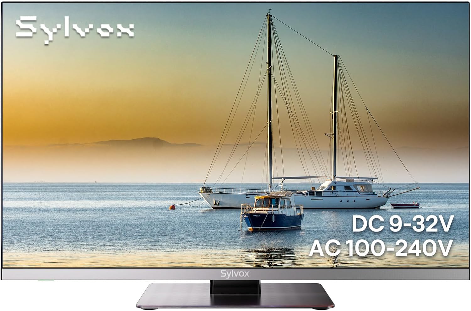SYLVOX 22-inch RV TV, 1080P FHD Smart Google TV, 12V/24V DC & AC Power, with Built-in DVD Player for Truck RV Boat, Waterproof Remote, 9-32V Wide Voltage Shock-Resistant Design