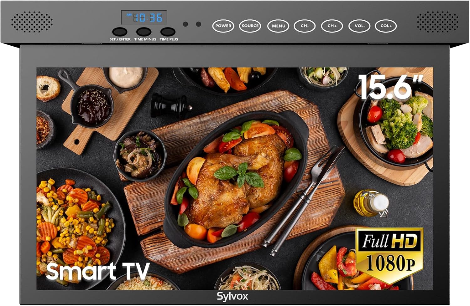 SYLVOX Kitchen TV, 15.6-Inch Under Cabinet Television, 1080P FHD, Smart Google TV OS, 178° Wide Viewing for RV, Bedroom, Boat and More, Black