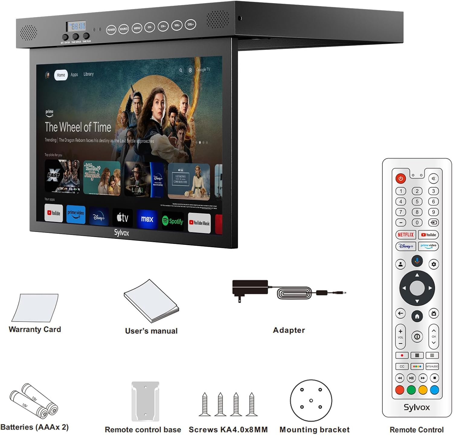Review: The TV works well, but the mounting plate assumes no relief (overhang) under the counter. I had to make a spacer to get the TV to fit properly. The biggest issues is our displayed clock on the TV didn’t work properly and would reset to 1200 every time the TV was turned off. Sylvox tried to get me to replace the battery (which didn’t fix the issue), then sent a new TV and when that battery was bad, they offered to pay for a new battery and installation costs. This finally fixed the displayed clock time and I am waiting for the repair repayment from them.As mentioned, the TV itself works great and has lots of channels and options for watching. The battery/clock issue is known by Sylvox, but has yet to be handled by them. Also, the Sylvox customer service team is less-than-great and is very sporadic; sometimes I would get responses right away and other times it would take days. Email seemed to work best. I never got an answer to my call. Buyer just be smart and beware.